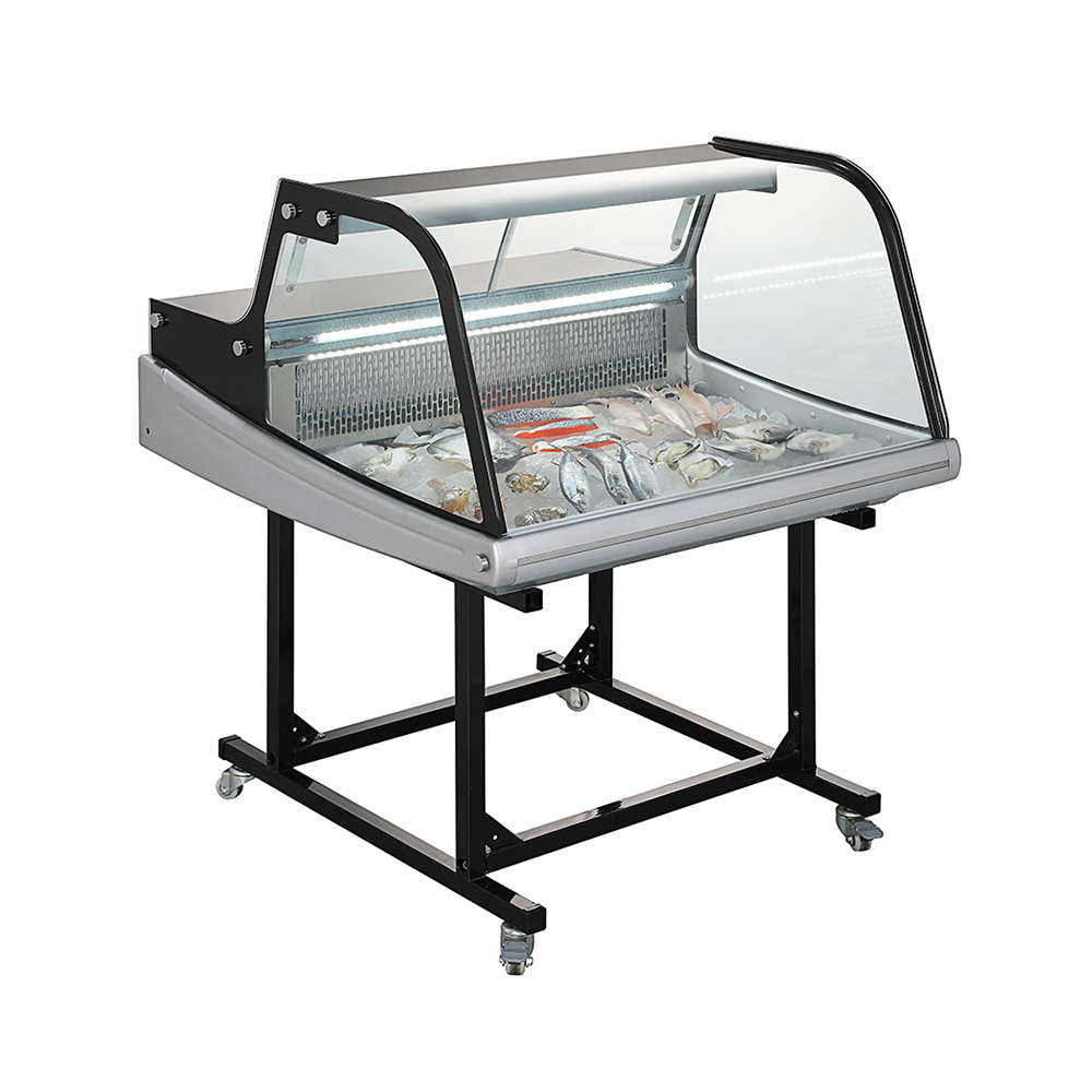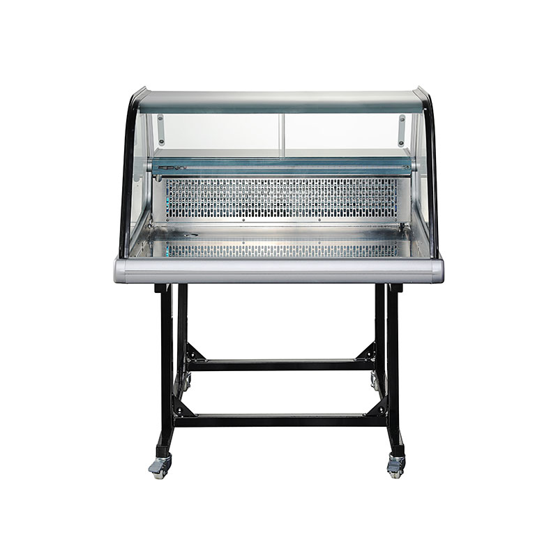 規程設計技能擺床箱殼內上方 LED 彩燈電子元器件室內溫度控制器器和室內溫度重量顯示上汽化器和排冷凝水水水糟直冷式制冷機活躍化霜三層鋼化玻璃前孤形玻離尾部移門可帶和可以帶邊側可挪動托架可配英國實驗室管理標準餐盤